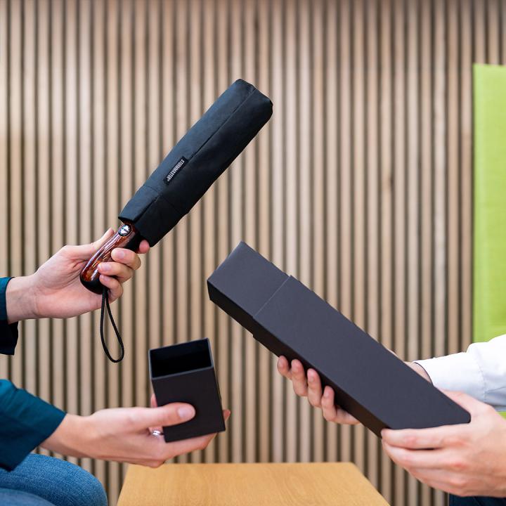Extrem stabiler Doppelautomatik-Taschenschirm in Übergröße in hochwertiger Einzelkartonage