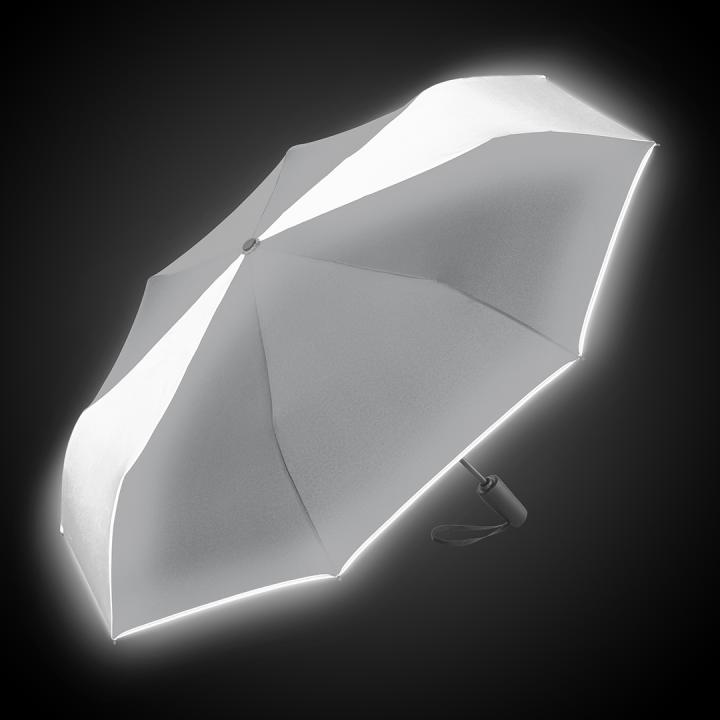 Trendiger Doppelautomatik-Taschenschirm mit modisch reflektierender Außenbeschichtung auf zwei Segmenten