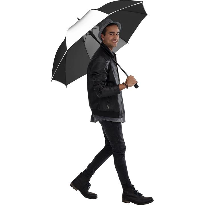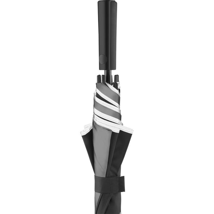 Trendiger Automatik-Gästeschirm für zwei Personen mit modisch reflektierender Außenbeschichtung auf zwei Segmenten