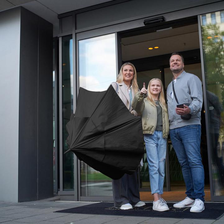 Exklusiver Automatik-Gästeschirm für zwei Personen mit Tropfenmotiv auf dem Fiberglasstock