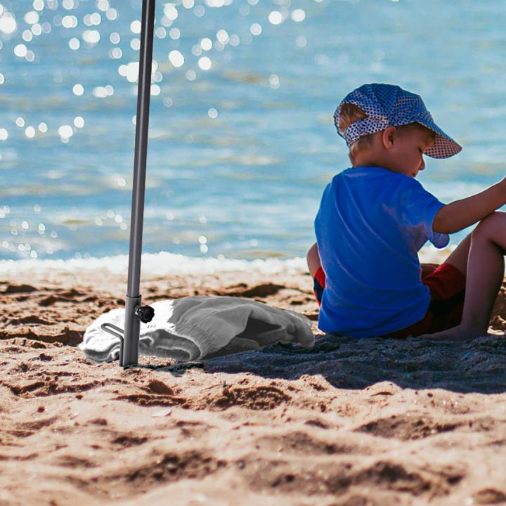 Moderner Sonnenschirm mit Gestell in Titan-Finish und Knickvorrichtung