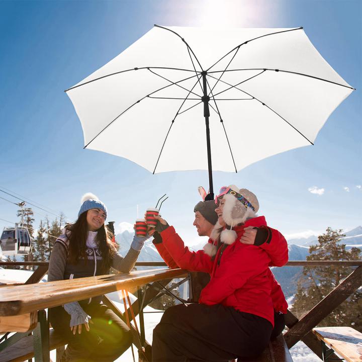 Moderner Sonnenschirm mit Gestell in Titan-Finish und Knickvorrichtung