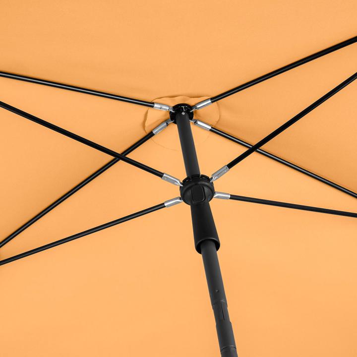 Moderner, rechteckiger Sonnenschirm mit Gestell in Titan-Finish, Knickvorrichtung und mit Volant