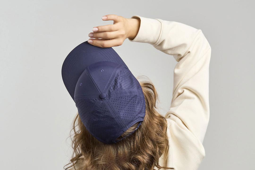 Water-resistant and made from recycled nylon, this hat is designed to withstand tough weather during outdoor activities, while easily transitioning into a stylish accessory. The laser holes enhance its sporty appeal, ensuring excellent breathability.