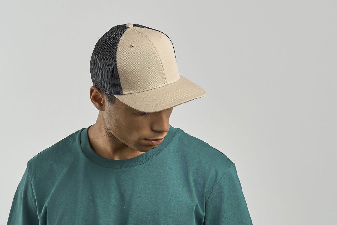 Classic structured 6 panel trucker cap in recycled polyester twill. Ventilated recycled mesh that keeps you fresh and recycled snapback closure. Ideal in the summer or when travelling.