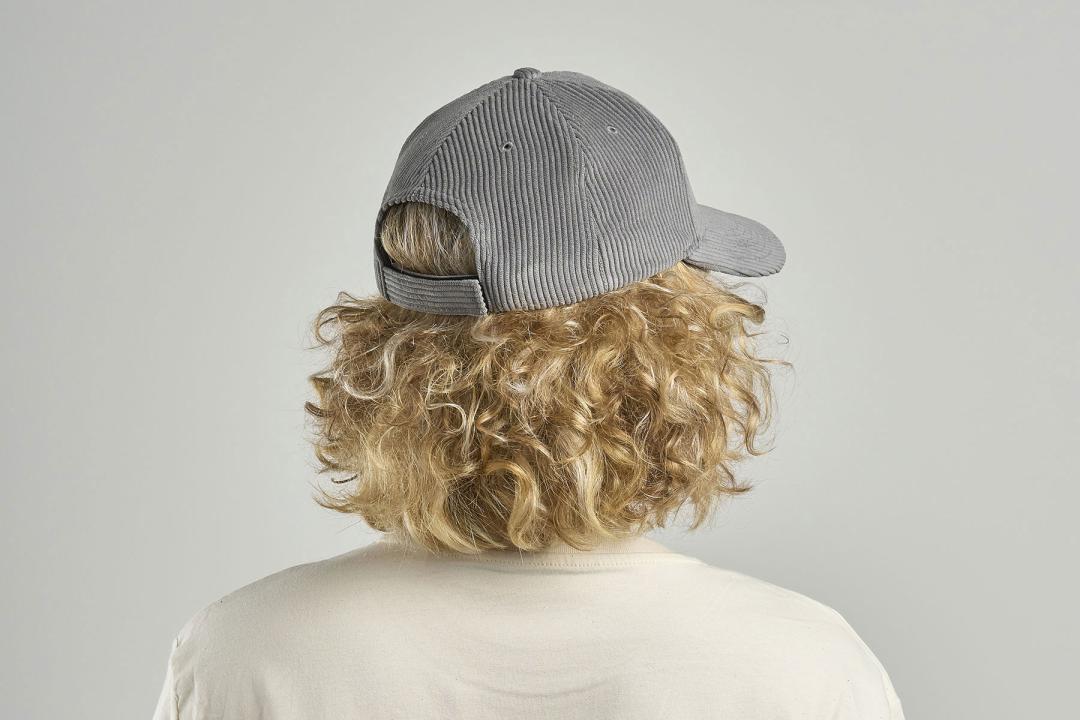 Structured 6 panels baseball hat in recycled polyester corduroy 8 wales with curved visor and hook-and-loop closure. Vintage look and warm handfeel.
