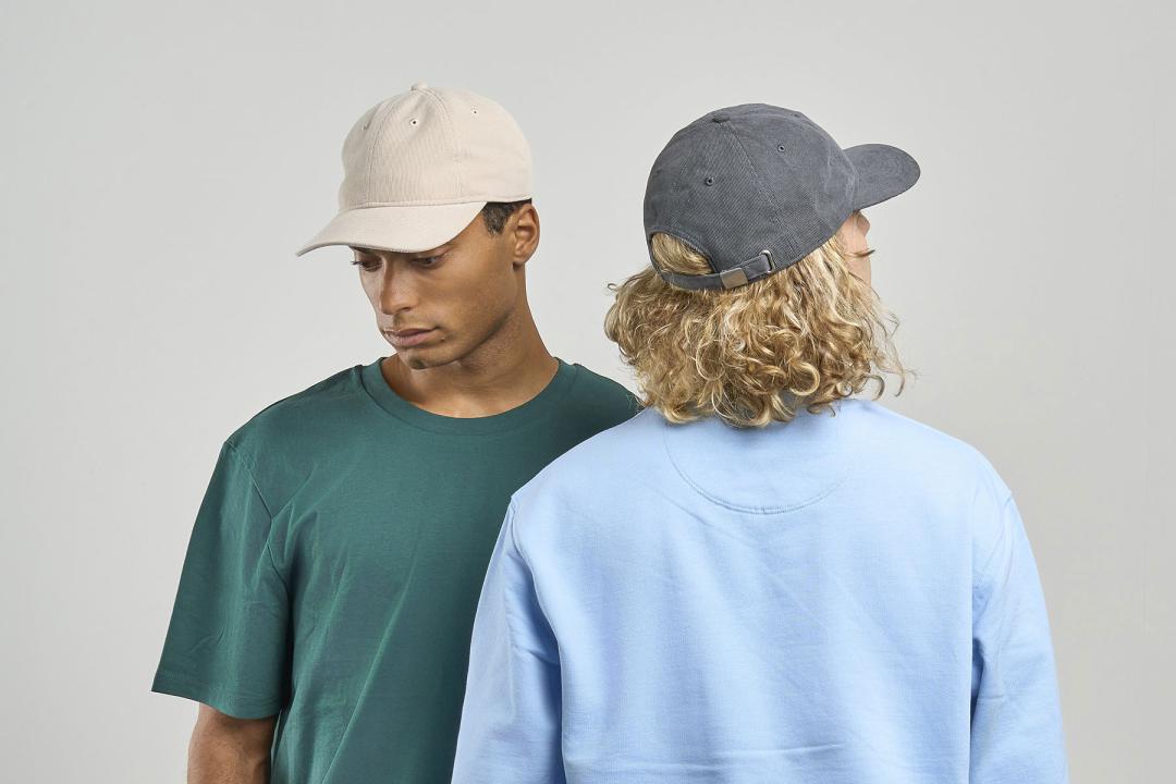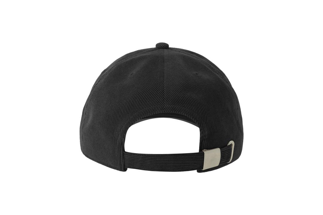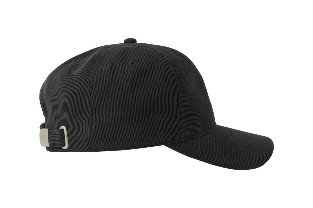 Unstructured 6 panels baseball hat in recycled polyester corduroy 21 wales with mid visor and metal buckle closure with metal hole. Vintage look and warm handfeel.