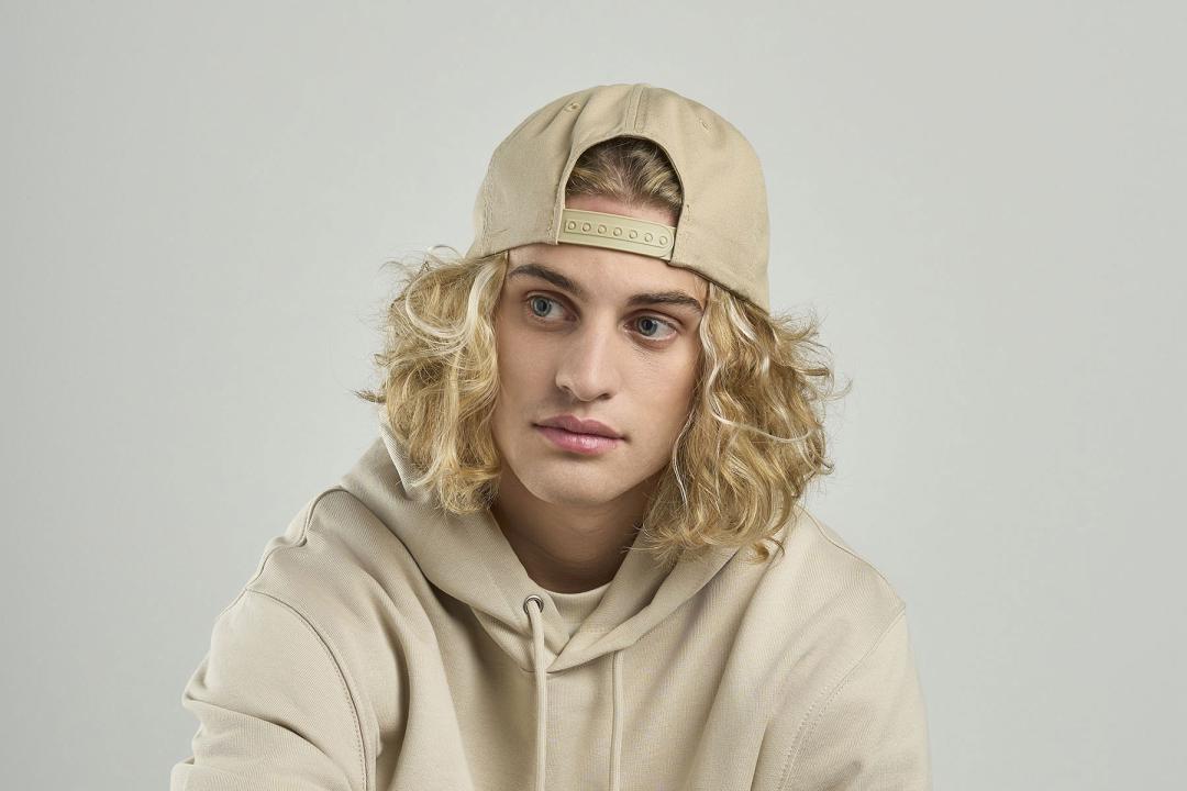 Unstructured old school cap made of a blend of recycled and organic cotton canvas. It features a flat visor and a recycled snapback closure.