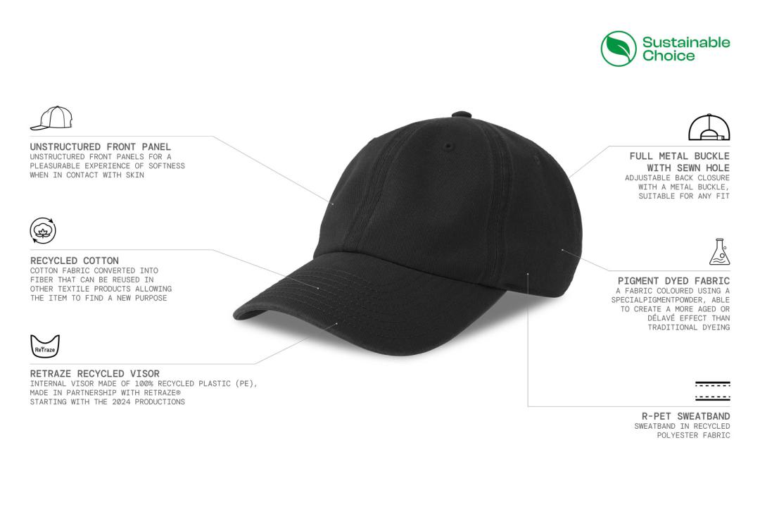 Made from recycled cotton with a pigment-dyed vintage effect, this classic six-panel design features an unstructured front and a metal closure. The perfect hat for vintage lovers and anyone looking to stay effortlessly on-trend.