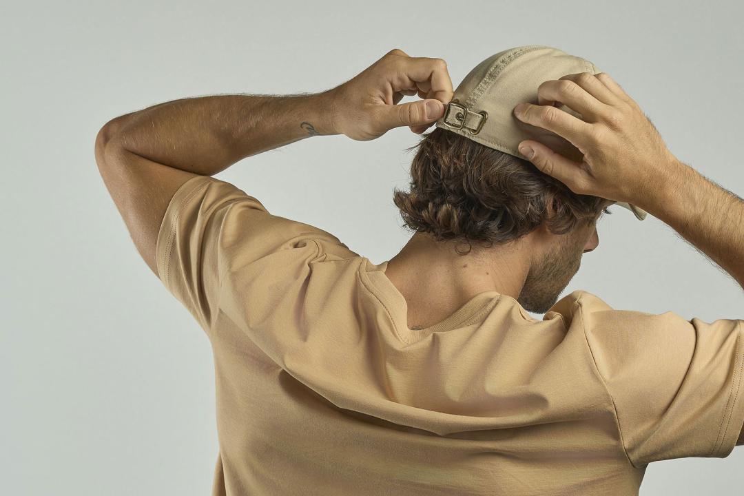 Retrò style made of a blend of recycled and organic cotton canvas, with soft crown, fully buckled closure and mid visor.