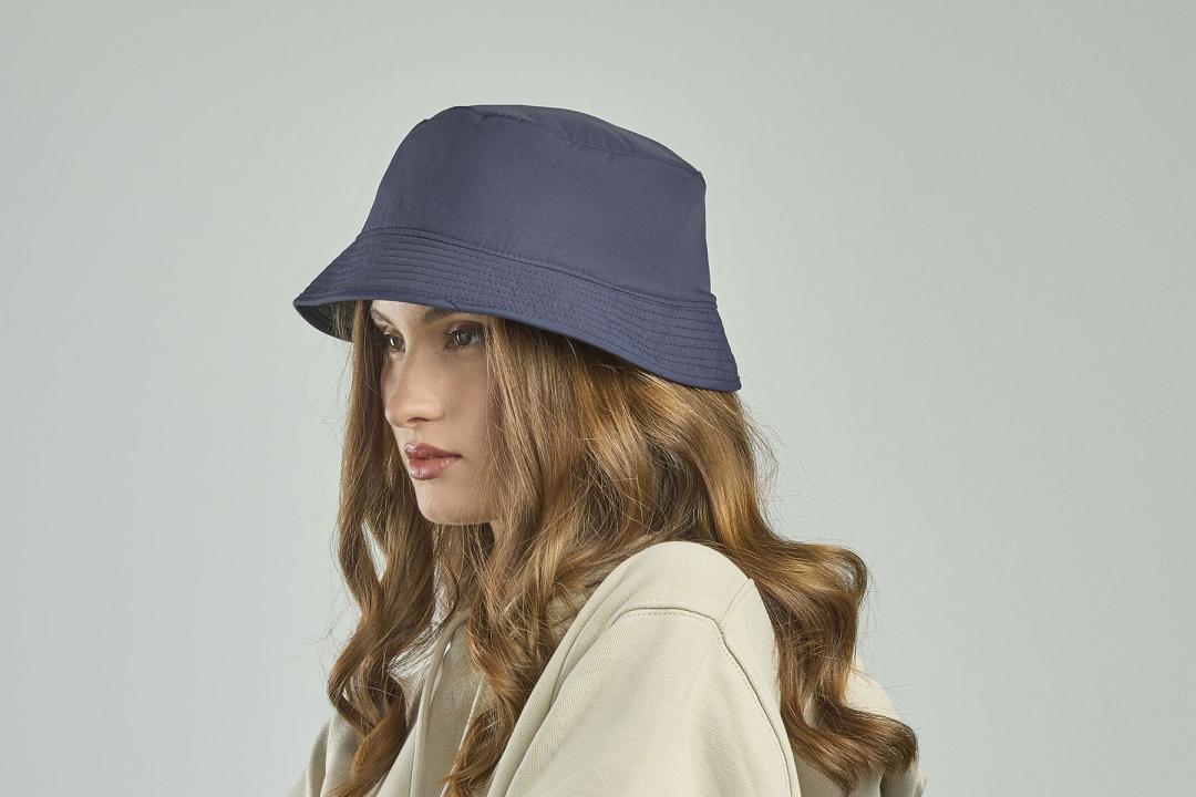 Winter reversible bucket hat in recyled nylon with inside lining in recycled polarfleece. Warm lining and eco water-resistant treatment for cold and rainy days.