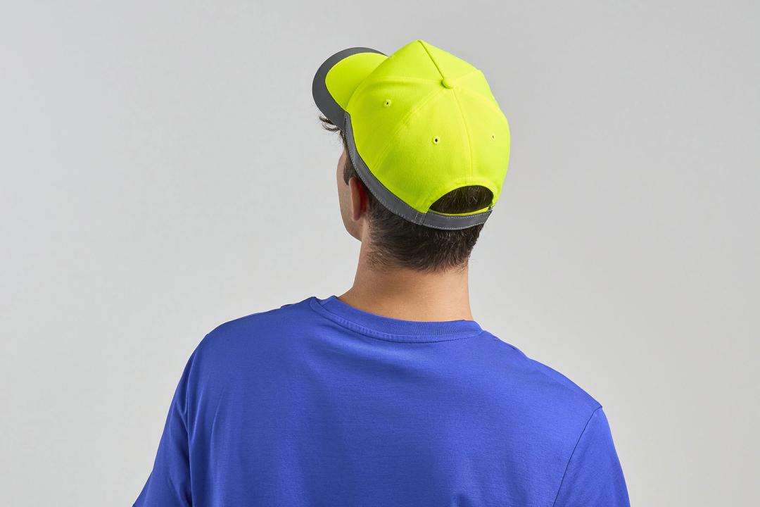 Water-resistant, high-visibility hat made with recycled reflective fabric, UV 50+ protection, and a PFC-free water-resistant treatment. The perfect solution for those seeking safety in low-light conditions or maximum sun exposure. The under-visor is grey, contrasting with the fluorescent outer colou...