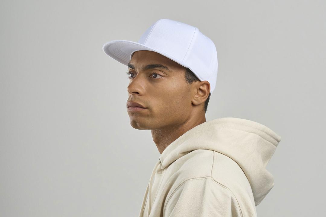 Structured six panel cap with full prostitching and snapback closure. Made of 100% certified recycled polyester. Old school look and flat visor shape.