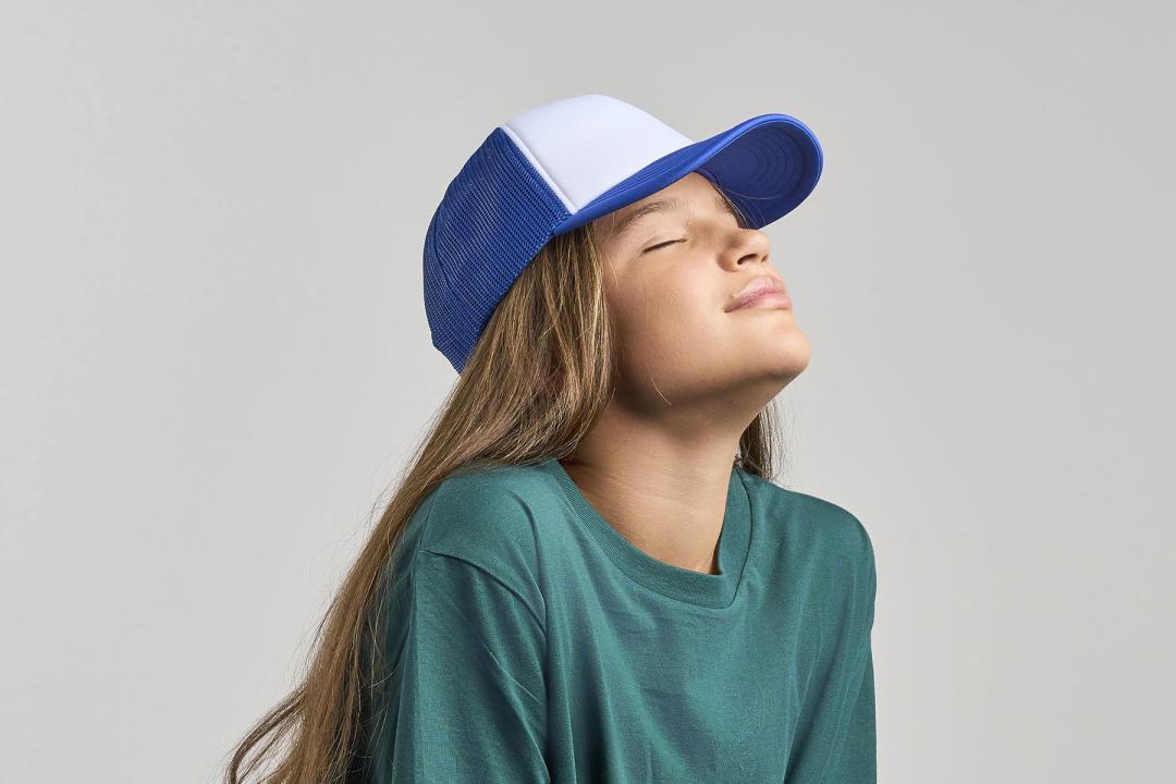 This is the children’s version of our iconic Rapper cap. It features all the elements of its larger counterpart: padded front panel, main fabric and breathable mesh made from recycled polyester, an adjustable snap-back closure, and a recycled ReTraze® visor.