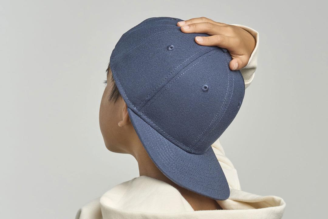 Streetwear style in kid size that features flat visor and recycled snapback closure. It is made of recycled polyester twill.