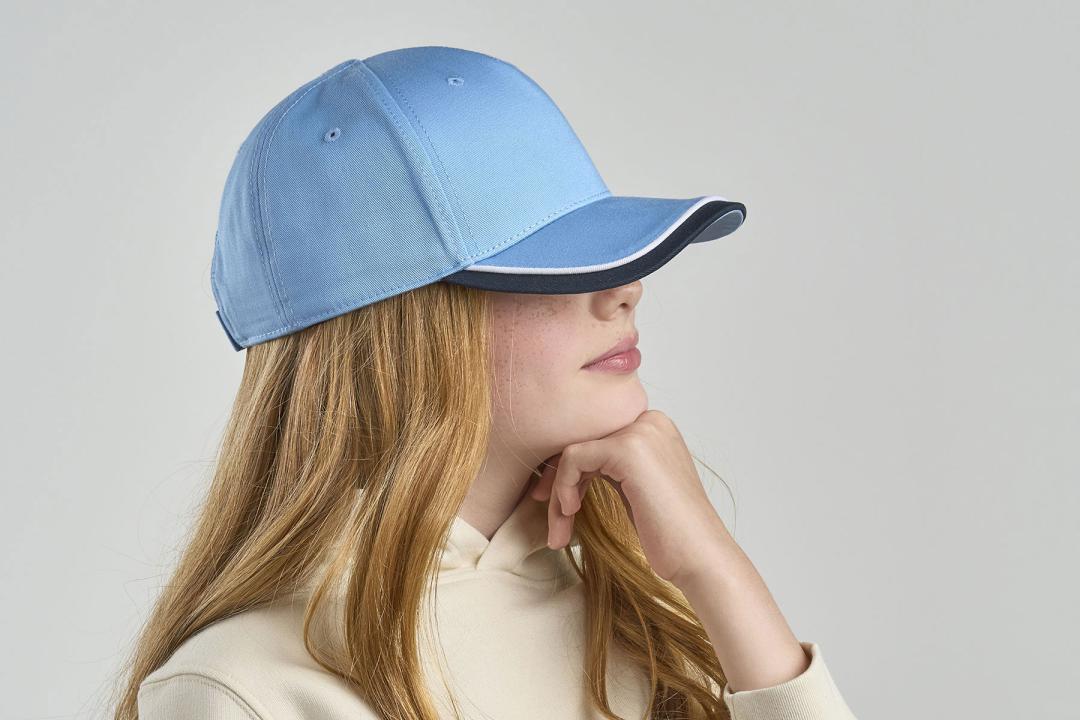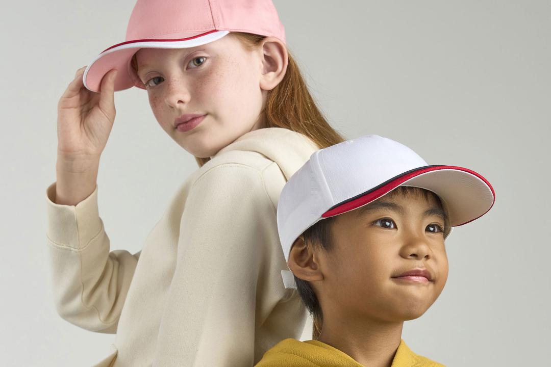 5-panel baseball hat in organic cotton in kid size for everyday activities, with curved visor and hook&loop closure.
