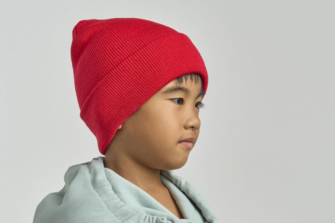 Classic shaped beanie in kids size, with cuff in recycled polyester yarn. Double layer and circular machine finish. Soft hand feel for everyday use.