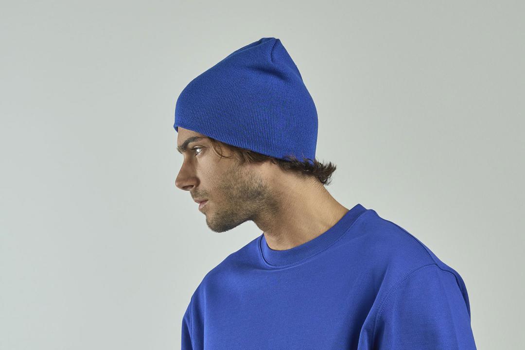 Comfortable beanie in recycled polyester yarn. Double layer and circular machine finish. Soft hand feel for outdoor activities and everyday use.