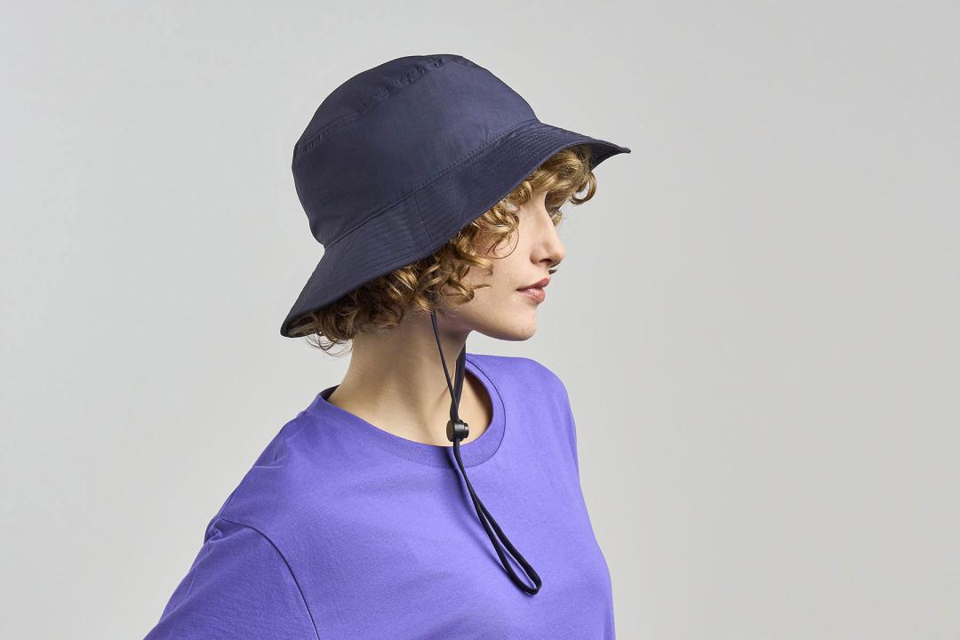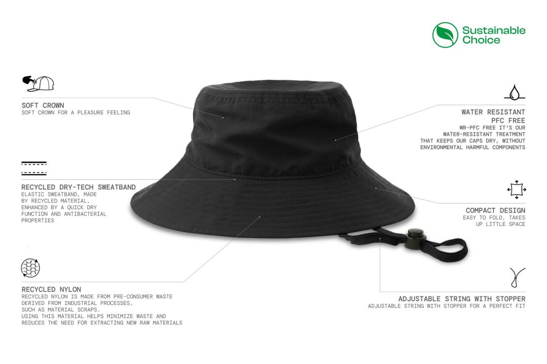 This hat is more than just a standard bucket. With its compact, practical design in water-resistant recycled nylon, it’s perfect for any outdoor activity. The adjustable closure is ideal for those seeking functionality, especially during high-energy sports.
