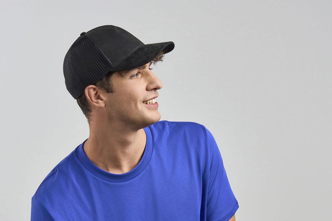 Can a trucker hat become elegant? When paired with a suede look that give it a casual sophisticated appearance. Made almost entirely from recycled polyester, it also includes a recycled snapback closure and a recycled ReTraze® visor.