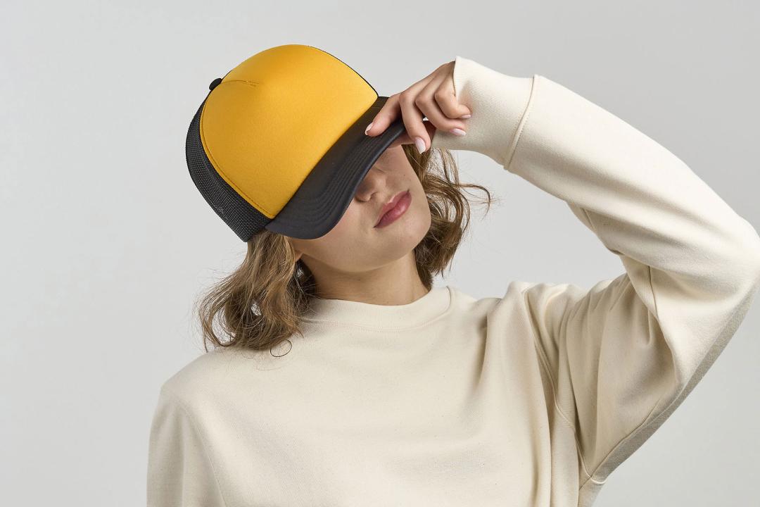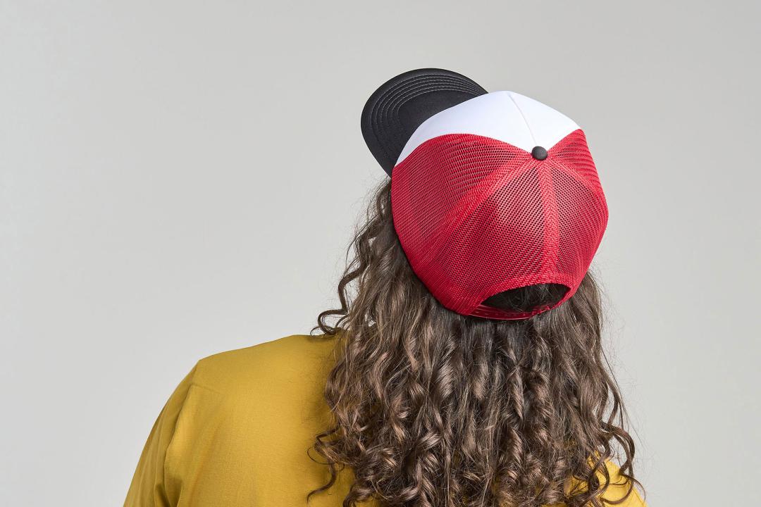 A trucker hat that has become a streetwear icon, thanks to its padded front panel. This urban-style cap, made from 100% recycled polyester, mesh included, is completed with a recycled snapback closure and a recycled ReTraze® visor.