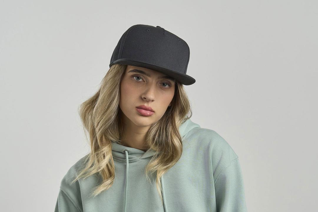 5-panel version of the Snap family in recycled polyester twill, it features flat visor and recycled snapback closure, typical of the streetwear culture.