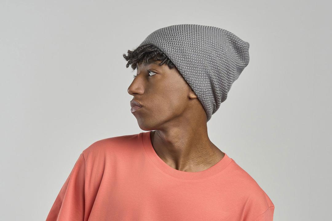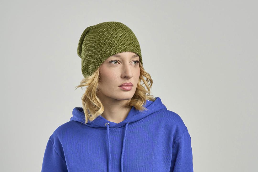 Soft acrylic long beanie made with honey comb structure of knit, in double layer, in perfect street and casual style.
