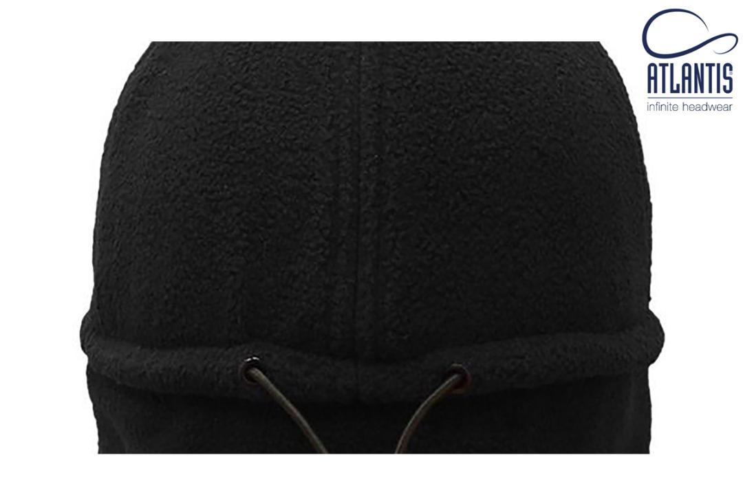 Polar fleece cap with folding earflaps, closure: adjustable drawstring and stopper.