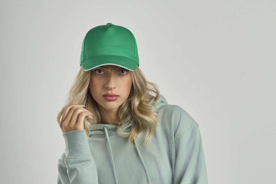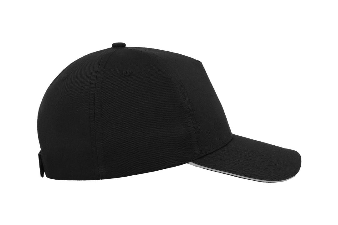 The 5 panels cap in 100% light cotton, with contrasting sandwich on visor, suitable for any events and promotional world. Back hook-and-loop closure.