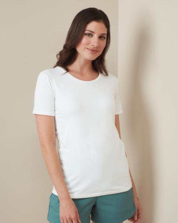 Comfortable T-shirt for women, made of soft and sleek cotton-elastane-blend.