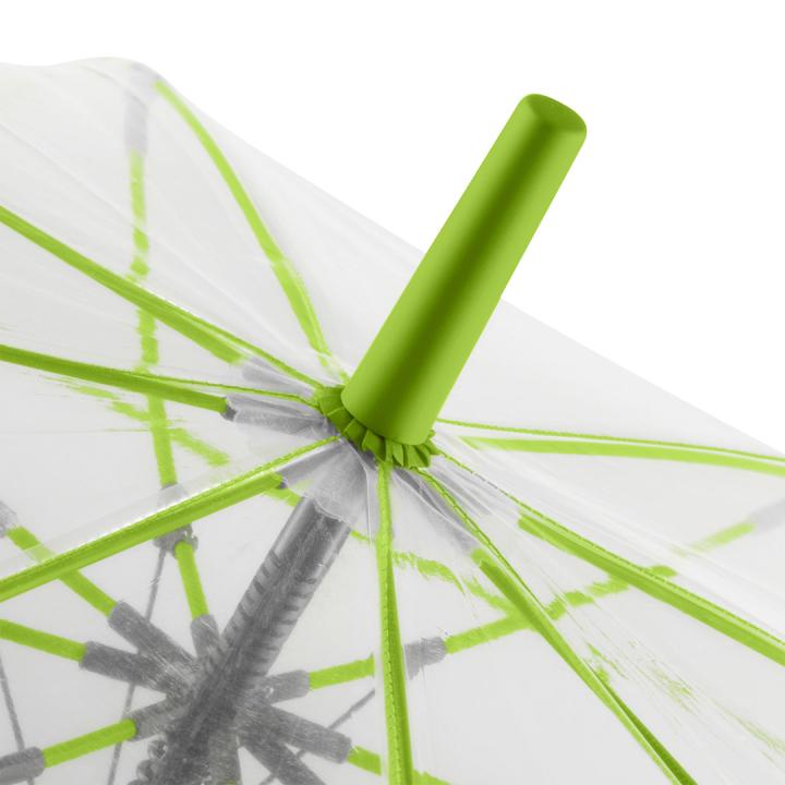 Ansprechender Automatik-Stockschirm mit transparentem Bezug und farbigen Details