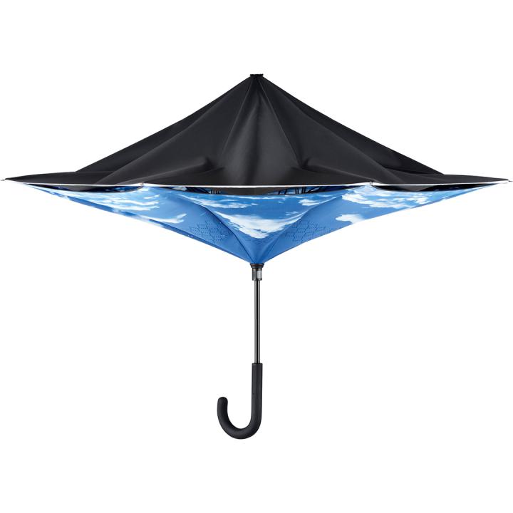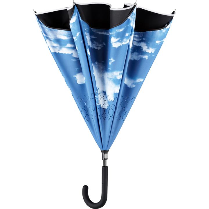 Trendiger Stockschirm mit umgekehrtem Öffnungs- und Schließmechanismus und Wolkenhimmel-Motiv auf dem Innenbezug