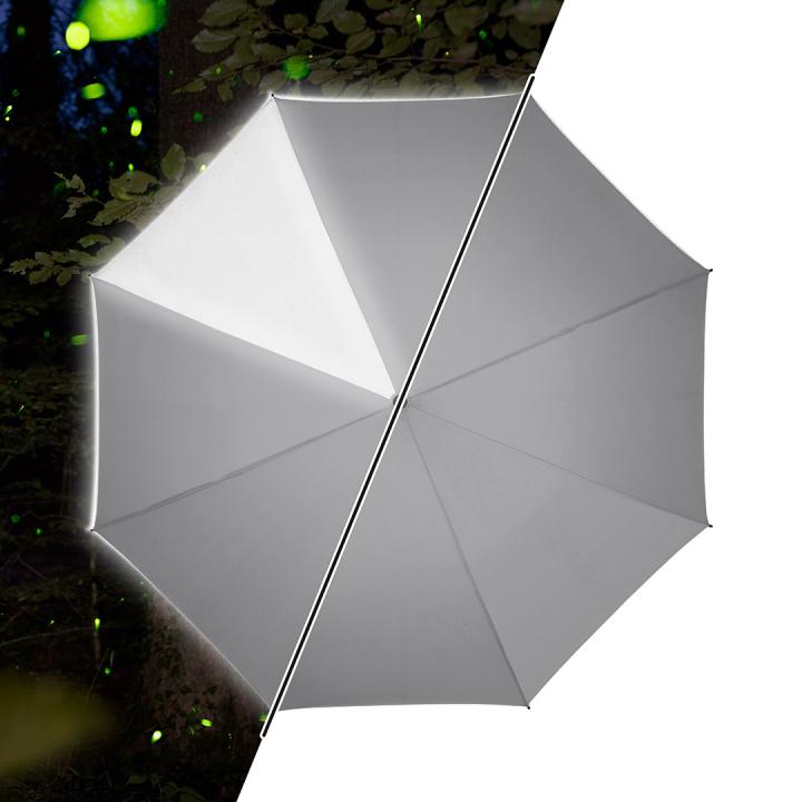 Trendiger Doppelautomatik-Taschenschirm mit modisch reflektierender Außenbeschichtung auf zwei Segmenten