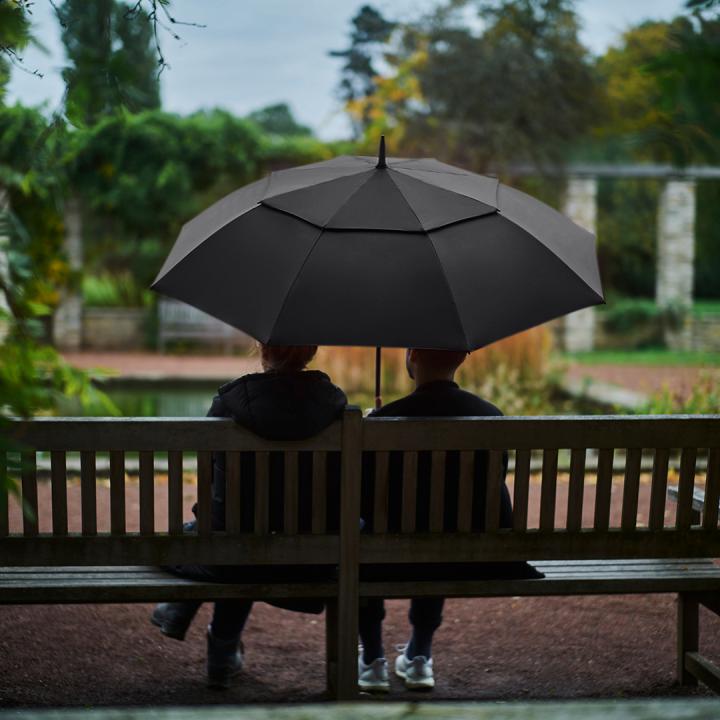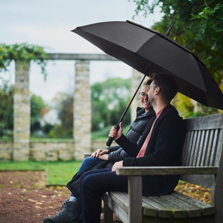 Exklusiver Automatik-Gästeschirm für zwei Personen mit Tropfenmotiv auf dem Fiberglasstock