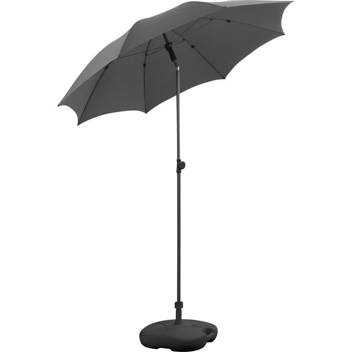 Moderner Sonnenschirm mit Gestell in Titan-Finish und Knickvorrichtung