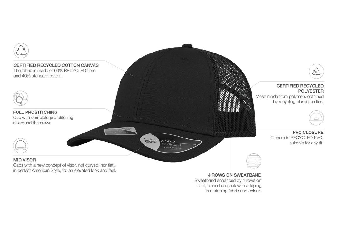 The Recy Three is our new challenge that weaves three different fabrics, mixing 50% recycled cotton and 50% classic cotton, adding a stylish recycled polyester mesh and closure.
